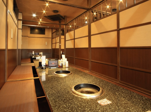 【掘りごたつ】周囲に気兼ねしないでゆっくり味わえる、ファミリーも安心の半個室スペース。小さい子ども連れに嬉しいお座敷席。プライベート空間でゆっくりと焼肉をお楽しみいただけます♪